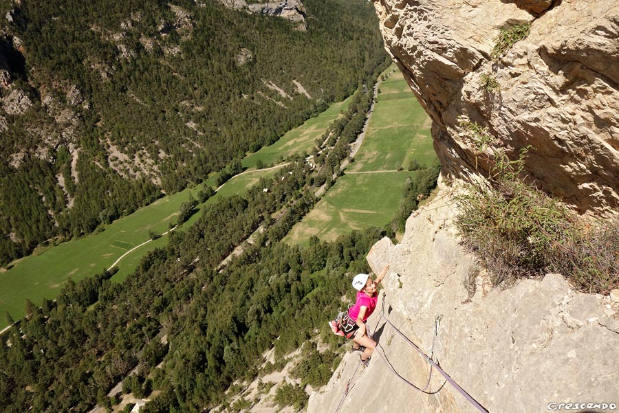 Une vallée résolument tournée vers l’escalade : des secteurs de couenne récents et durs, des secteurs de couenne anciens et durs, un secteur d’initiation face nord, et un secteur pour la grande voie face sud. Dans cette dernière certes courte (120m max), le rocher est globalement superbe et varié : du gris pas facile à grimper dans le socle, des gouttes d’eau et du très sculpté ailleurs, à l’ombre les matins d’été, au soleil au cœur de l’hiver, toute l’année on peut y grimper!