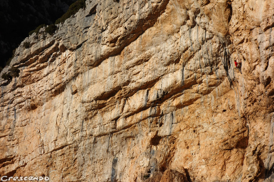 Un tout autre style pour cette sublime barre sud : ici les profils vont du mur franchement vertical au léger dévers sur un calcaire très compact et parfait. Une grimpe qui demande détermination et concentration sur des itinéraires de 30m. La patine semble avoir épargnée ce vieux site, loin de tout peut être, loin des modes et pourtant tellement classe.